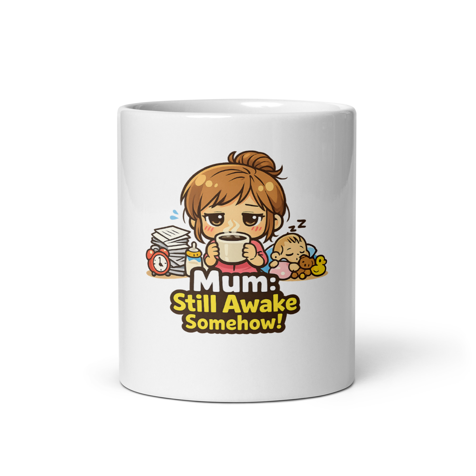If staying awake feels like an achievement in itself, this mug aligns with that reality. It doesn’t exaggerate—it simply reflects what many already know: somehow, despite everything, mums keep going.